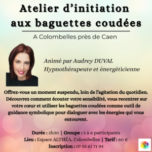 Les sessions avec les baguettes coudées ont une durée approximative de 120 minutes (2h). Après un bref entretien sur ce qui vous amène, nous procédons à la séance d’étude et de libérations en elle-même qui sera enregistrée.